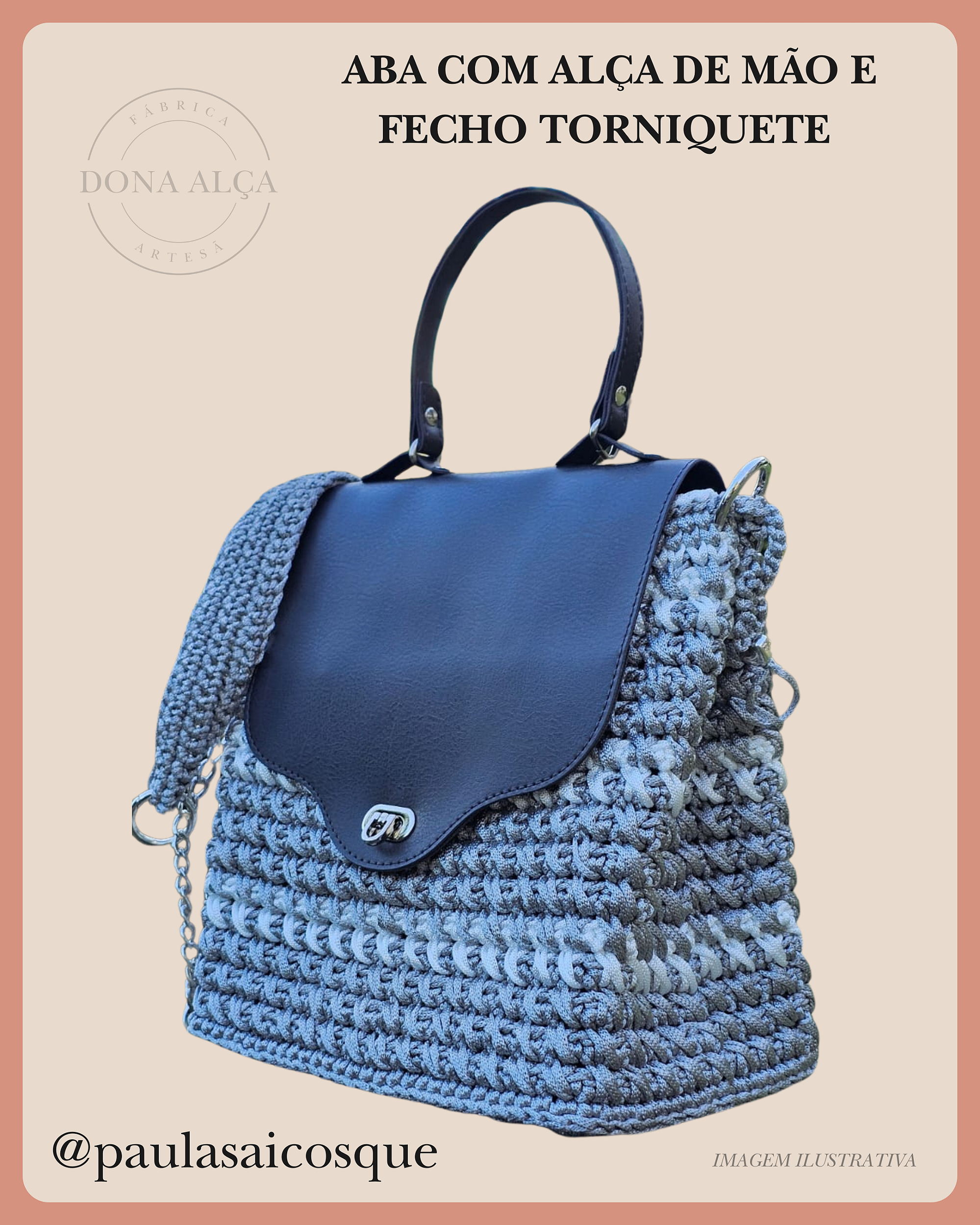 A Aba com Alça de Mão e Fecho torniquete para Bolsa de Crochê 22x28cm, praticidade e sofisticação às suas criações artesanais.