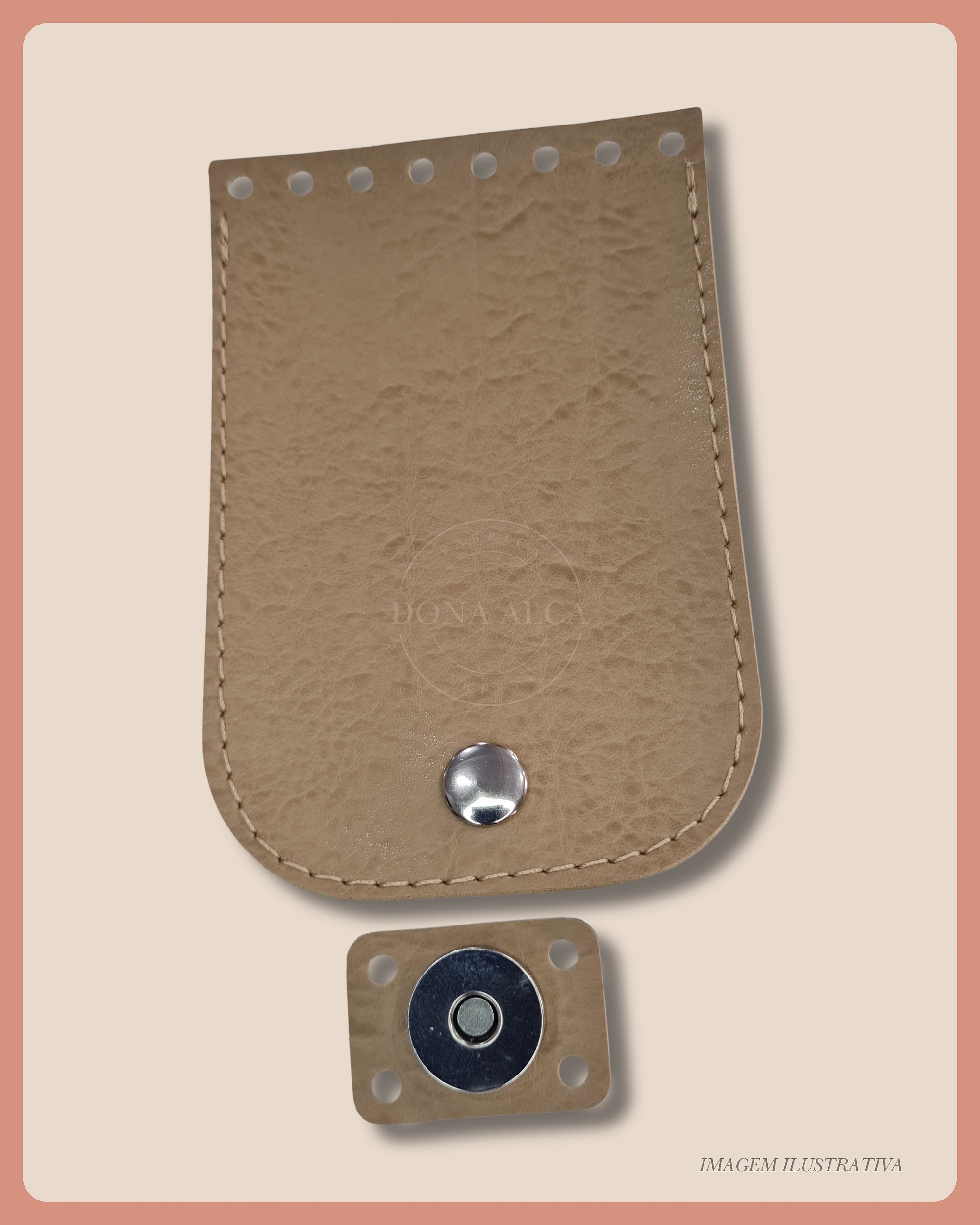 Feita em montana com acabamento pespontado, essa aba possui tamanho compacto, perfeito para bolsas pequenas.