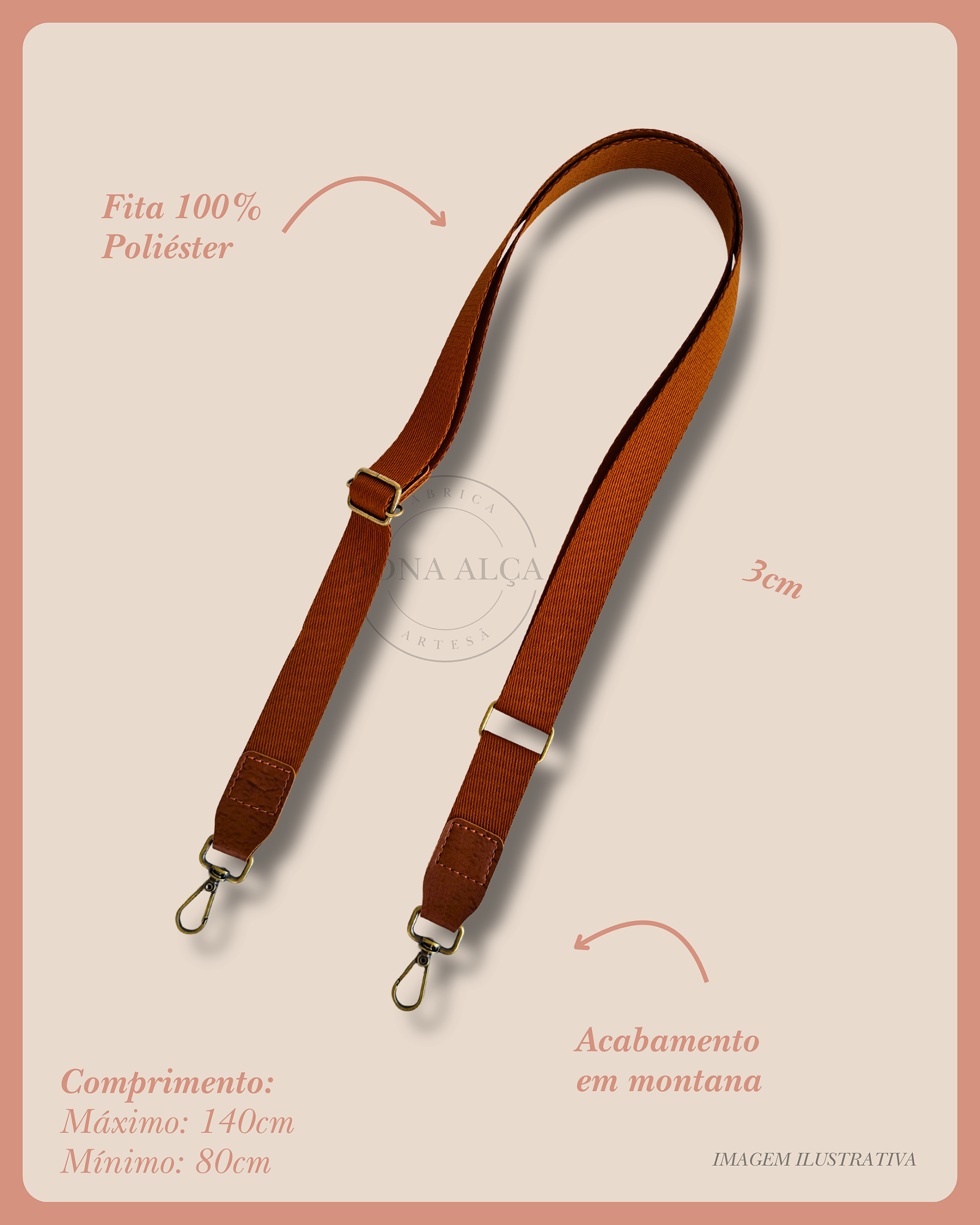 As informações referem-se à 1 unidade da alça tiracolo em fita com regulador para bolsa