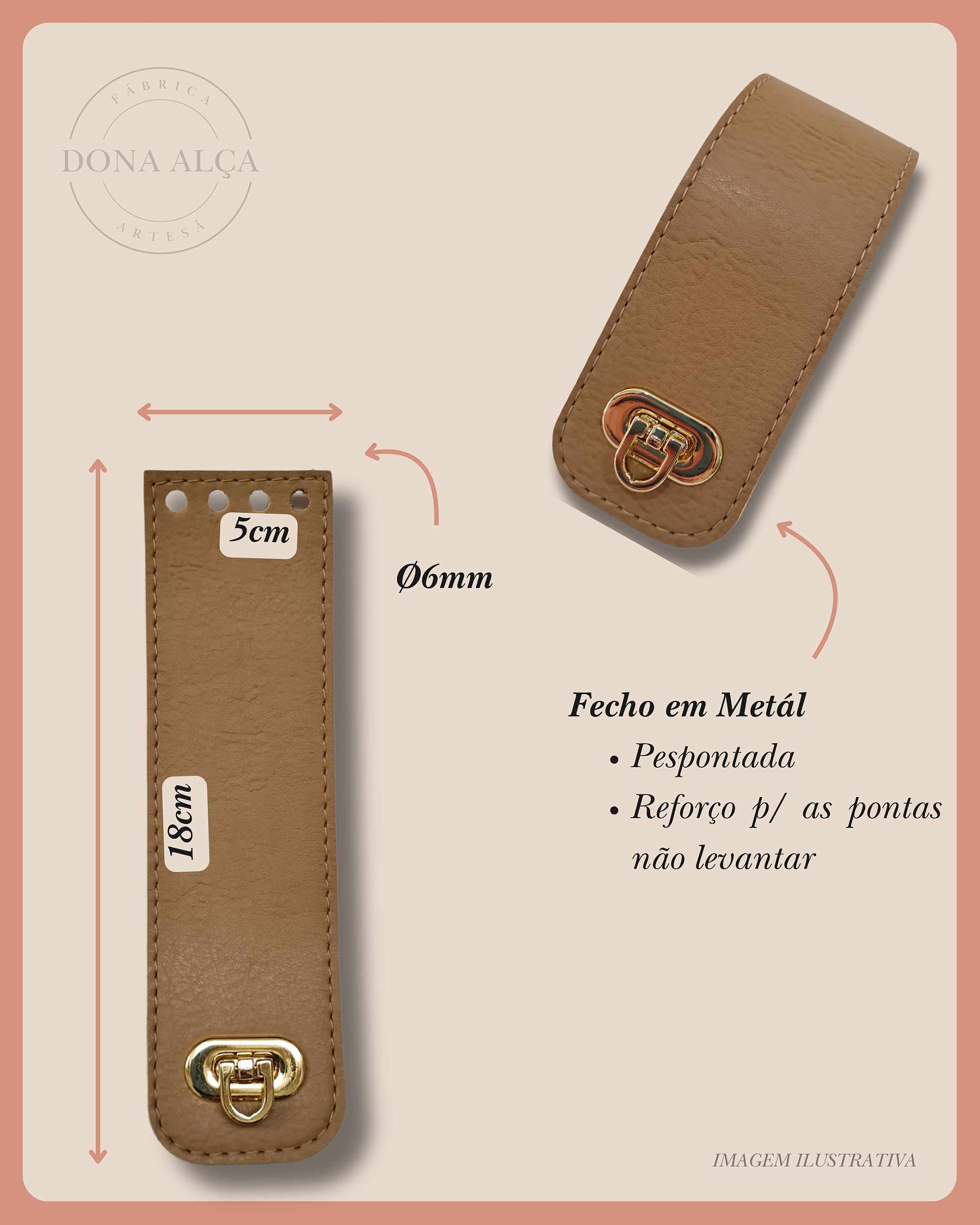 Fácil de fixar, garante um acabamento profissional, valorizando ainda mais suas criações e proporcionando um visual refinado para suas bolsas.